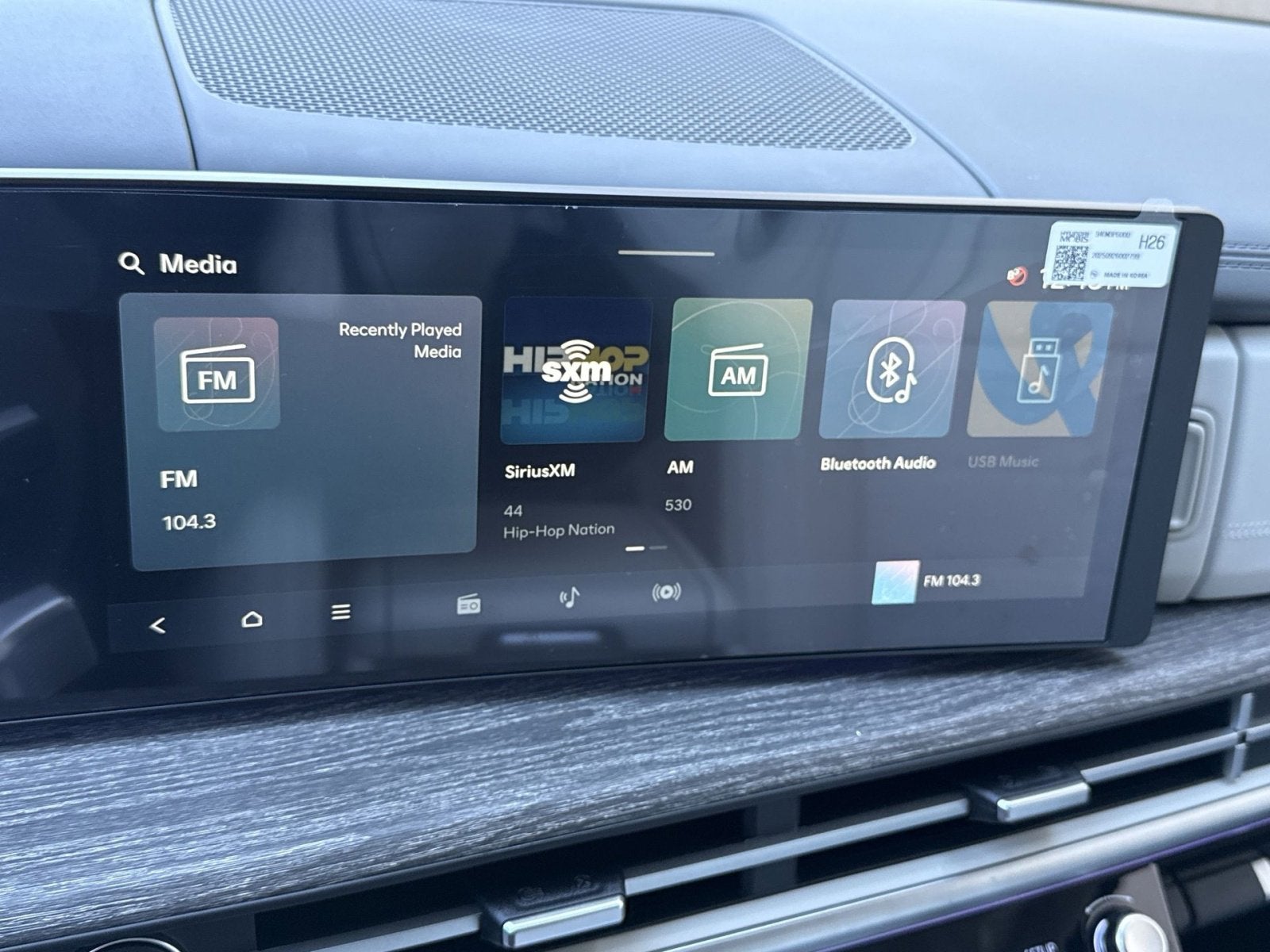 - Radio: AM/FM/HD Bose Premium Audio System -inc: 12 speakers including subwoofer, external amplifier, 12.3" wide touchscreen, wireless Apple CarPlay and Android Auto, Bluetooth® hands-free w/wireless audio streaming, dynamic voice recognition, USB connectivity, SiriusXM, wifi hotspot, Blue Link connected car system, navigation system including traffic flow w/incident data via HD Radio (HERE), OTA updates and rear seat quiet mode