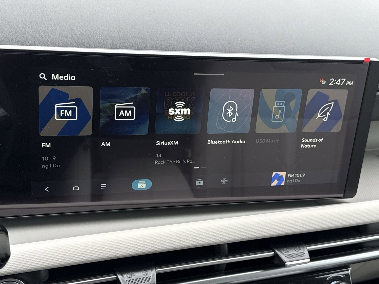 - Radio: AM/FM/HD Audio System -inc: 12.3" color touchscreen display, 6 speakers, SiriusXM satellite radio system (3-month trial subscription), wireless Apple CarPlay and Android Auto integration, controller OTA update capability, Blue Link connected car system and USB connectivity