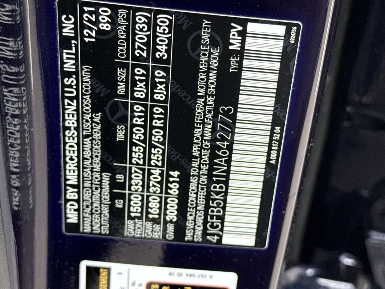 - Front Tire Size: P275/45HR21