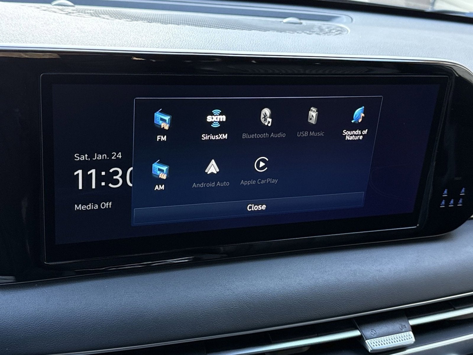 - Radio: AM/FM/MP3 Premium Audio System -inc: 630-Watts, Harman Kardon audio system w/12-speakers, Quantum Logic Surround, Clari-Fi, 12.3" color touchscreen display, onboard navigation w/traffic flow including incident data via HD Radio (HERE), Over-the-Air (OTA) map updates, SiriusXM, Android Auto and Apple CarPlay, USB, dynamic voice recognition, rear seat quiet mode, passenger talk (in-car intercom), Bluetooth® hands-free connectivity w/multiple device connection and Bluelink Connected Car System