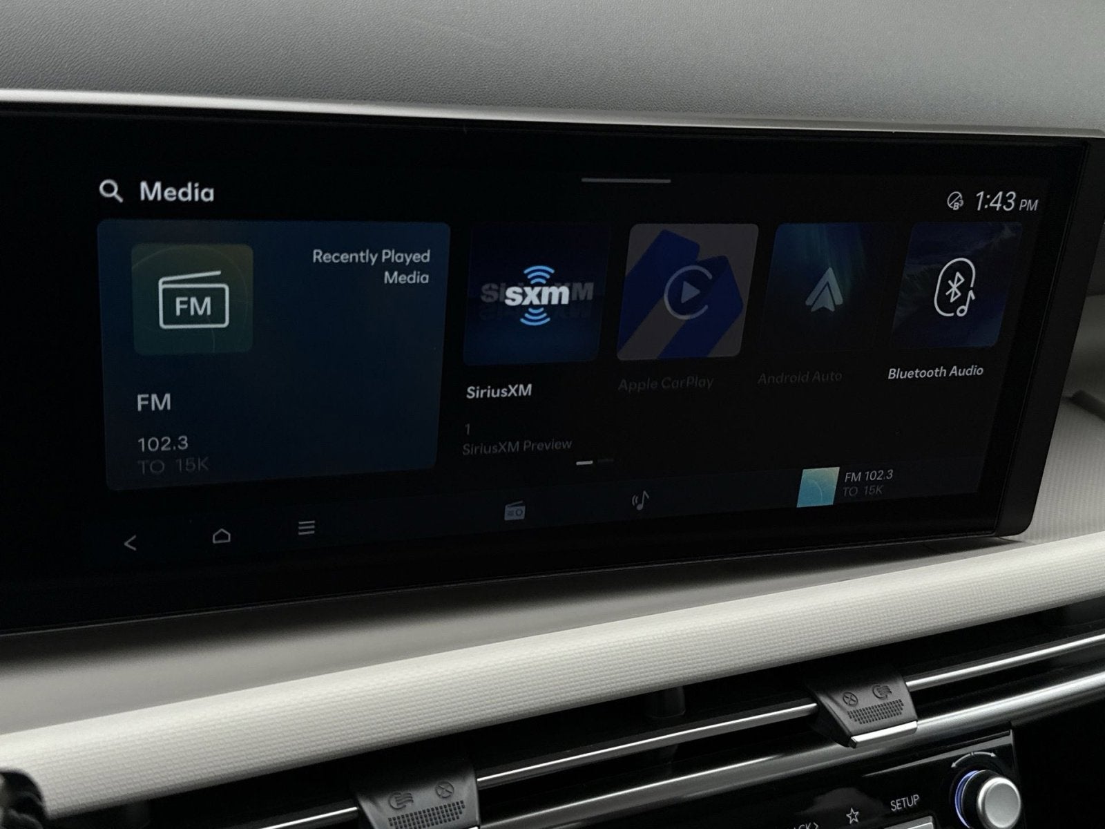 - Radio: AM/FM/HD Audio System -inc: 12.3" color touchscreen display, 6 speakers, SiriusXM satellite radio system (3-month trial subscription), wireless Apple CarPlay and Android Auto integration, controller OTA update capability, Blue Link connected car system and USB connectivity